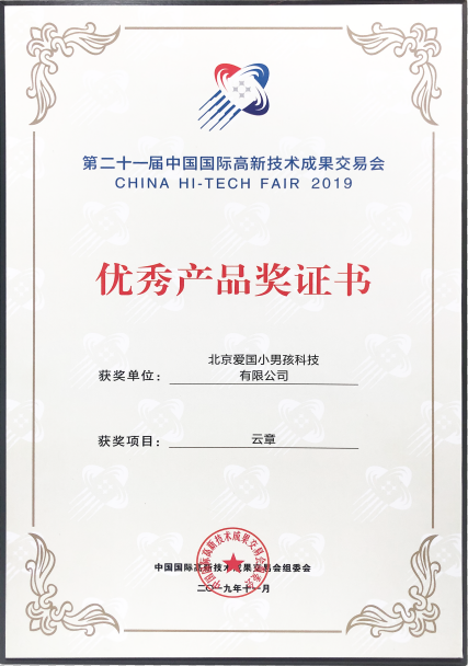 愛國(guó)小男孩科技作為受邀展商之一,在高交會(huì)現(xiàn)場(chǎng)展示了智能用章解決方案云章產(chǎn)品,受到了參展商、媒體及現(xiàn)場(chǎng)觀眾的高度關(guān)注。并憑其獨(dú)特的設(shè)計(jì)理念,獲得第21屆高交會(huì)“優(yōu)秀產(chǎn)品獎(jiǎng)”證書。