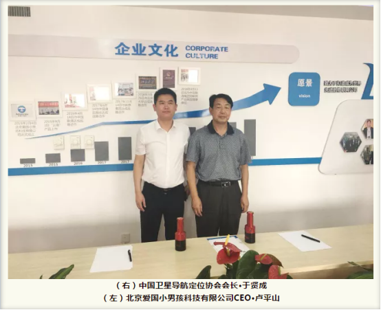 (右)中國衛(wèi)星導(dǎo)航定位協(xié)會(huì)會(huì)長·于賢成(左)北京愛國小男孩科技有限公司CEO·盧平山