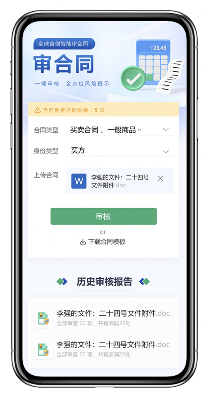 云章即將推出全新功能版塊——【秒審合同】,利用人工智能技術開發出智能合同風險審查工具。用印前文件合同審查,實現對合同風險內容的快速識別與提示,幫助企業辨別合同內容中的法律風險,并獲得專業律師的指導,有效避免人為疏忽或遺忘造成的錯審漏審。審查合同文件審核歷史報告實時記錄,可隨時翻閱查看,數據化歸檔,查閱調取方便,追蹤事后溯源。
