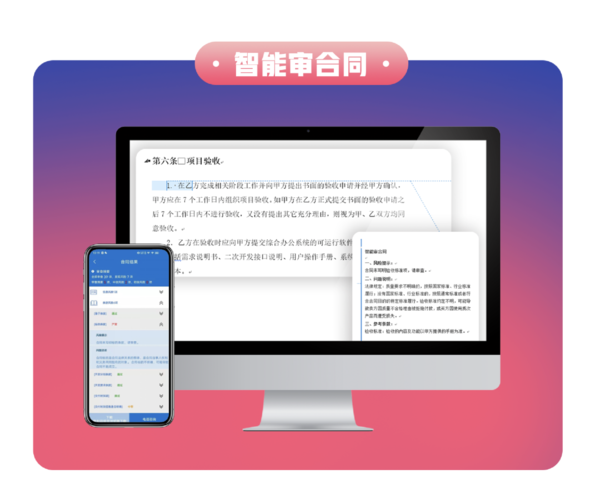 融合云平臺、客戶端(手機App和Web)智能終端交互方式,通過云章App或Web端進入秒審在線“上傳合同——合同審查——下載批注版鏈接”,即可獲得合同審查結果并在電腦端進行合同修改。在審核結果清單和批注文件頁面集中顯示風險類型、問題說明、風險提示、參考條款等信息,可依據風險提示對合同進行修改操作,讓合同審查更加高效。