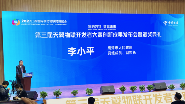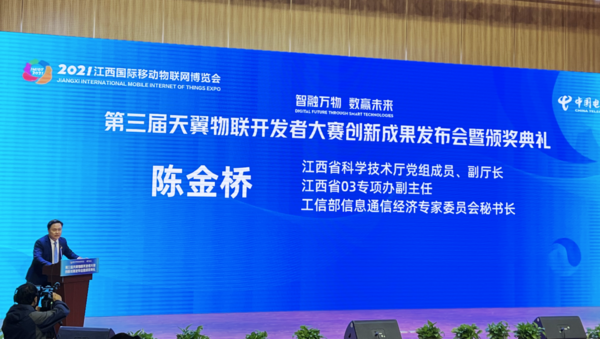 同期,中國電信第三屆天翼物聯(lián)網(wǎng)開發(fā)者大賽創(chuàng)新成果發(fā)布會(huì)暨頒獎(jiǎng)典禮在科技館2F報(bào)告廳舉辦。江西省科學(xué)技術(shù)廳黨組織成員、副廳長陳金橋;鷹潭市人民政府黨組成員、副市長李小平;天翼物聯(lián)科技有限公司副總經(jīng)理趙建軍;中國電信股份有限公司江西分公司副總經(jīng)理劉儉;中國電信股份有限公司研究院副院長、天翼科技創(chuàng)業(yè)投資有限公司總經(jīng)理張頡華等領(lǐng)導(dǎo)發(fā)表致辭。
