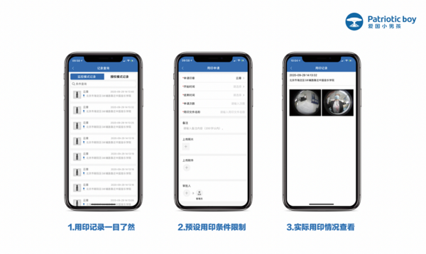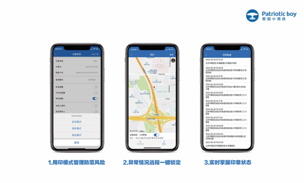 愛國小男孩智慧印章管理解決方案,在不破壞原有印章情況下,將企業實體印章嵌入智能云章設備中,采用云平臺、客戶端(手機App和Web)、智能終端三位融合的交互方式,通過鏡頭記錄每一次蓋章的過程:使用人、對象、時間、地點,通過4G物聯網將以上用章信息發送給管理者,隨時查看追溯,能解放印章管理者工作壓力,降低風險。