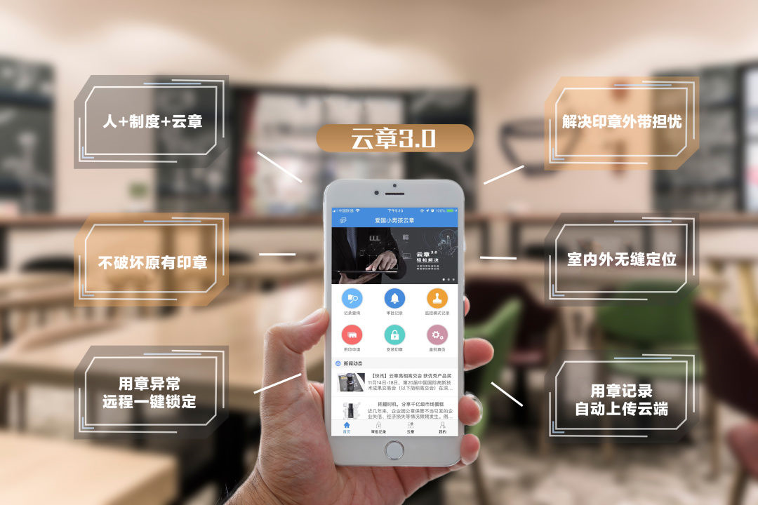 公章(包括法人章、部門章、項目章、合同章、專用章等)被盜用、亂用現象長期存在。云章3.0產品主要針對的是政府機構、企業公章管理成本高、監管效率低下問題。云章的智慧用章解決方案目前是國內首創的集軟件、硬件、公章制度三位一體的方案,已獲得國家發明專利,公安部安全與警用產品質量檢測中心認證。解決方案摒棄了傳統的“人+制度”的管理方式,由線上APP及WEB端與線下云章產品相結合,有效地避免的公章在使用中產生的風險。