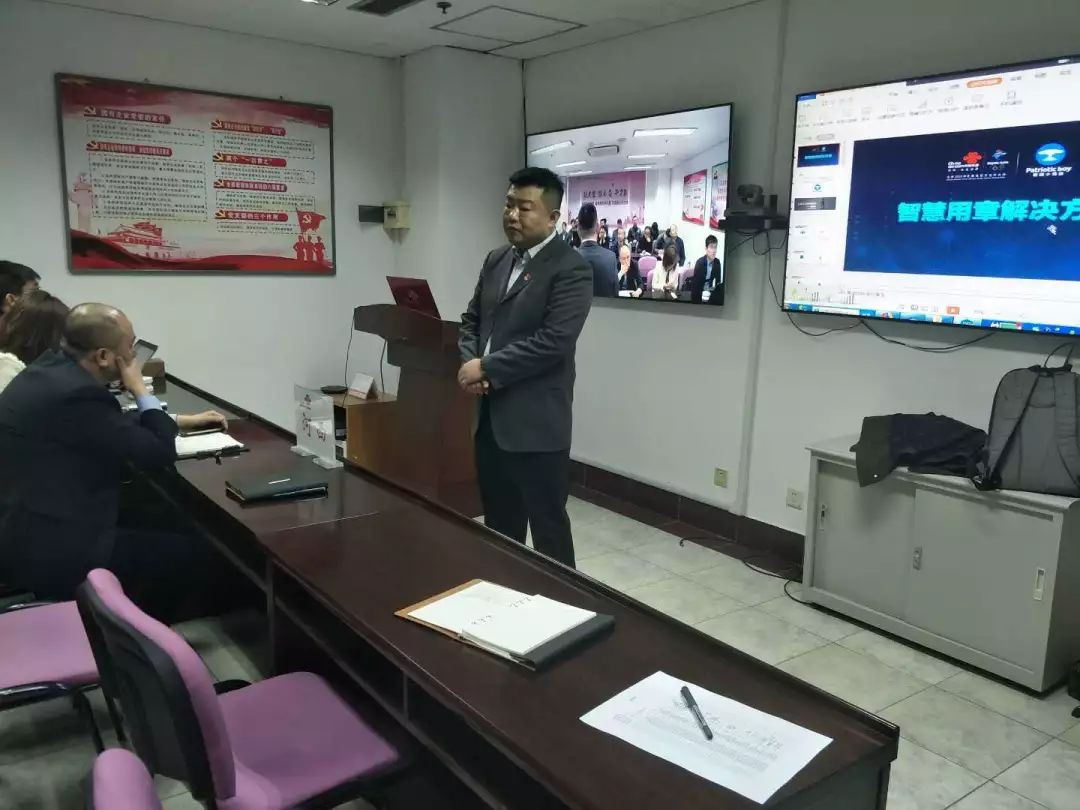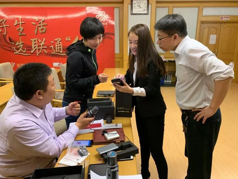 愛國小男孩科技銷售經理喬晶晶為天津聯通公司寶坻區總經理伊亞敏講解云章產品的使用