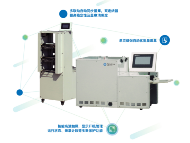 智能蓋章機恰好能解決制約檢測行業發展的困擾,它可以實現自動化批量蓋章、智能記憶蓋章位置、智能高清觸屏操作、無人值守自助打印蓋章等功能,可以提升檢測報告的蓋章效率,減輕蓋章人員的壓力。