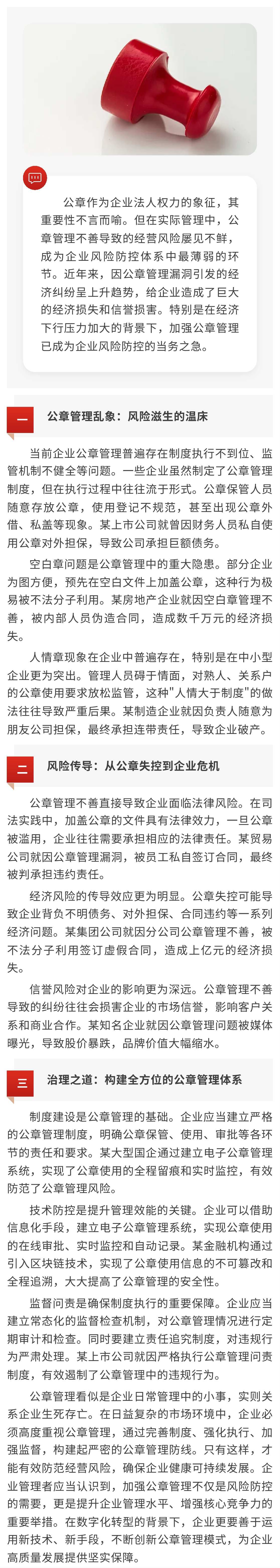 公章管理不善:企業(yè)風(fēng)險(xiǎn)防控的"致命弱點(diǎn)"