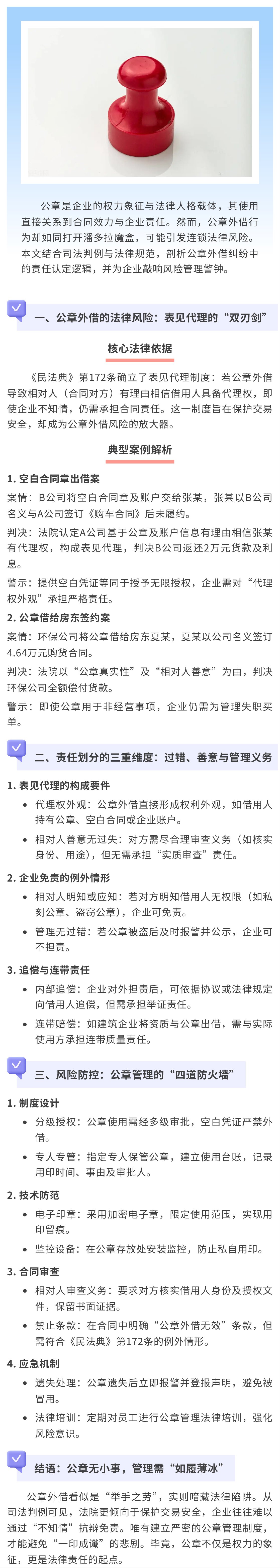 公章外借引發合同糾紛:責任歸屬的法律邏輯與風險警示