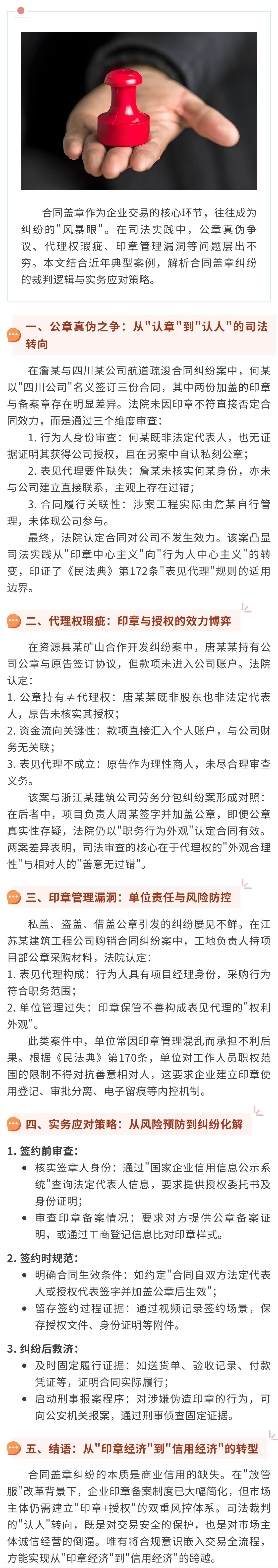 《公章≠保險栓:合同蓋章糾紛的司法裁判與防控之道》