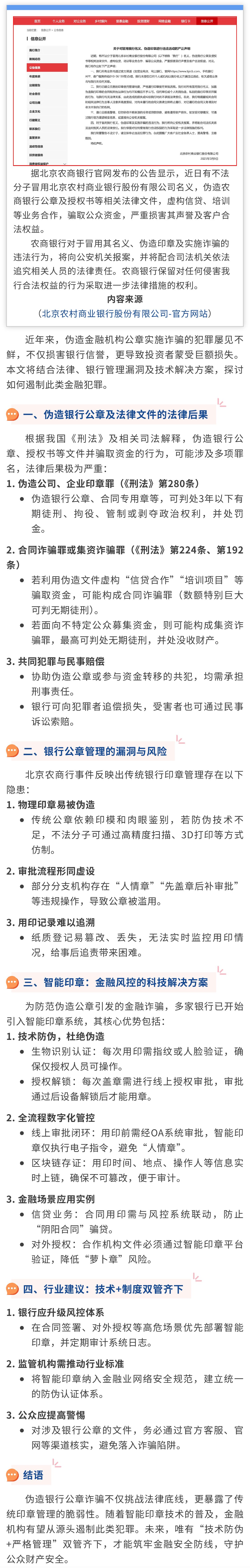 偽造銀行公章詐騙頻發(fā):法律嚴(yán)懲、管理漏洞與智能印章的破局之道