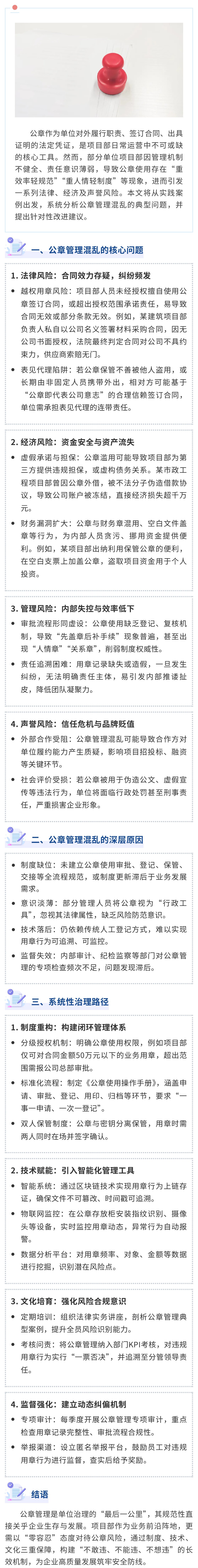 單位項目部公章管理混亂的潛在風險與治理路徑